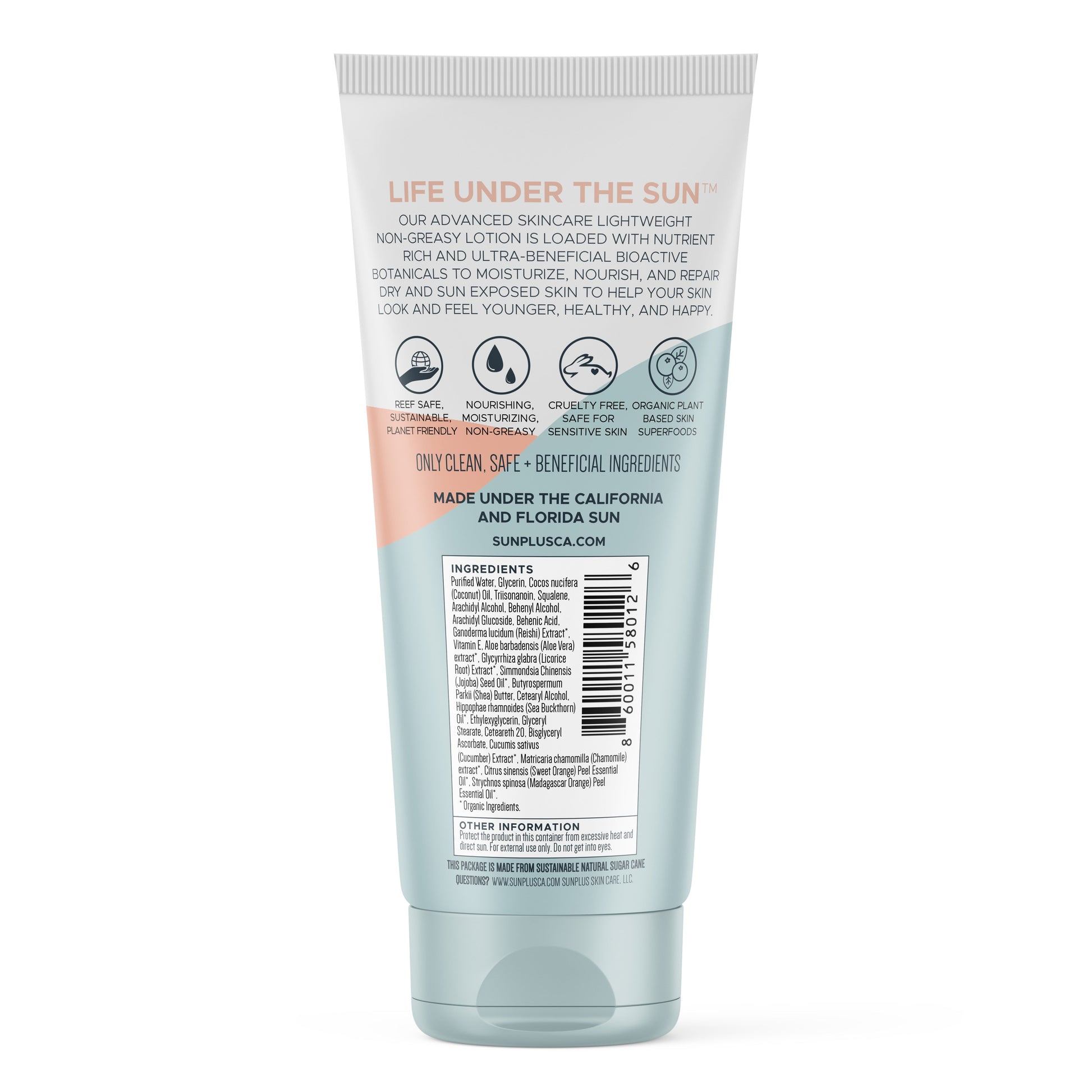 Utilizing advanced skincare ingredients, our lightweight and non-greasy Solar Repair Lotion is a luxurious and silky body lotion formulated and infused with antioxidant-rich sea buckthorn, chamomile, vitamin E, and aloe to calm inflammation; ultra-hydrating squalene, jojoba, and shea butter to soften and moisturize; and licorice root and reishi extract to further nourish and reduce signs of aging – all to make your skin feel and look hydrated, youthful, healthy, and happy.